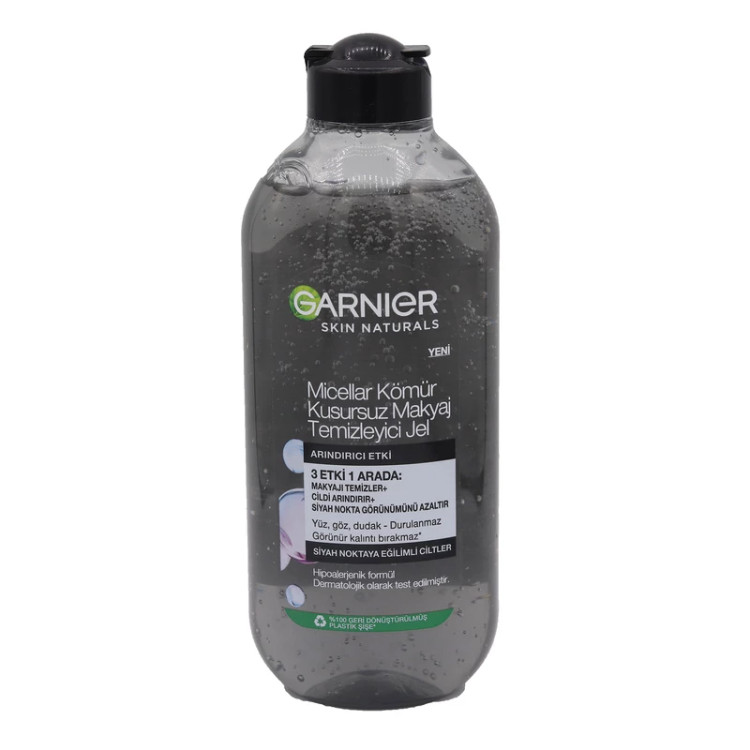 میسلار ژل زغالی گارنیر 400 میل انواع کثیفی و چربی و آرایش را با قدرت بسیار بالا پاکسازی نموده و میتوان از این محصول بی نظیر برای پاکسازی چشمها و لبها نیز بهره برد. فرمولاسیون بی نظیر این محصول حاوی حاوی زغال چوب و اسید سالیسیلیک میباشد که ضمن پاکسازی پوست، عیوب پوستی را نیز برطرف میکند. نیروی تصفیه کنندگی بالایی دارد و پوست را بخوبی تمیز میکند. یک محصول ضد حساسیت بوده و برای انواع پوست حتی پوستهای حساس نیز مناسب است. برای پوستهای ضد جوش نیز توصیه میشود.