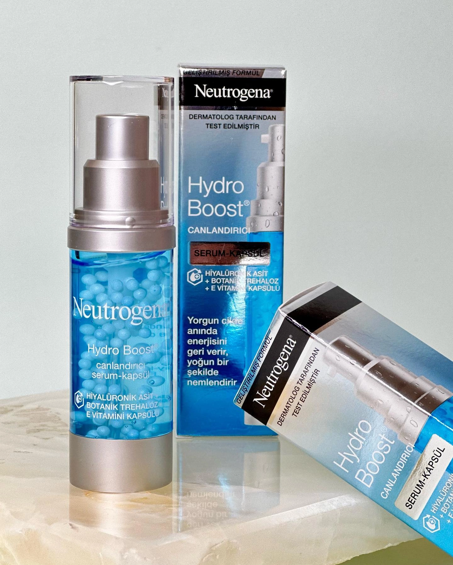 سرم آبرسان کپسولی نوتروژینا Hydro Boost این سرم سرشار از هیالورونیک اسید بوده و یک مرطوب کننده و آبرسان قوی برای پوست محسوب می شود. سرم کپسولی نوتروژینا با آبرسانی و تغذیه عمقی، آثار خستگی پوست را از بین می برد؛ حجم از دست رفته پوست را باز گردانده و موجب جوان و شاداب شدن پوست صورت می شود. کپسول های ویتامین E موجود در سرم نیتروژینا آنتی اکسیدان بوده و به حفظ رطوبت پوست و جلوگیری از پیری زودرس کمک می کند. ویژگیهای محصول مرطوب کننده و آبرسان قوی پوست حفظ رطوبت پوست برطرف کننده خستگی پوست انرژی رسانی و تغذیه پوست بازگرداندن حجم از دست رفته پوست پر کننده خطوط ناشی از کم آبی جوان و شاداب کردن پوست درخشان کننده پوست آنتی اکسیدان حفاظت از پوست در برابر رادیکال های آزاد غیر جوش زا بافت سبک و زود جذب مناسب انواع پوست مخصوصا پوست خشک