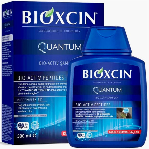 شامپو ضد ریزش مو بیوکسین آبی مدل کوانتوم مناسب موهای چرب 300 میل